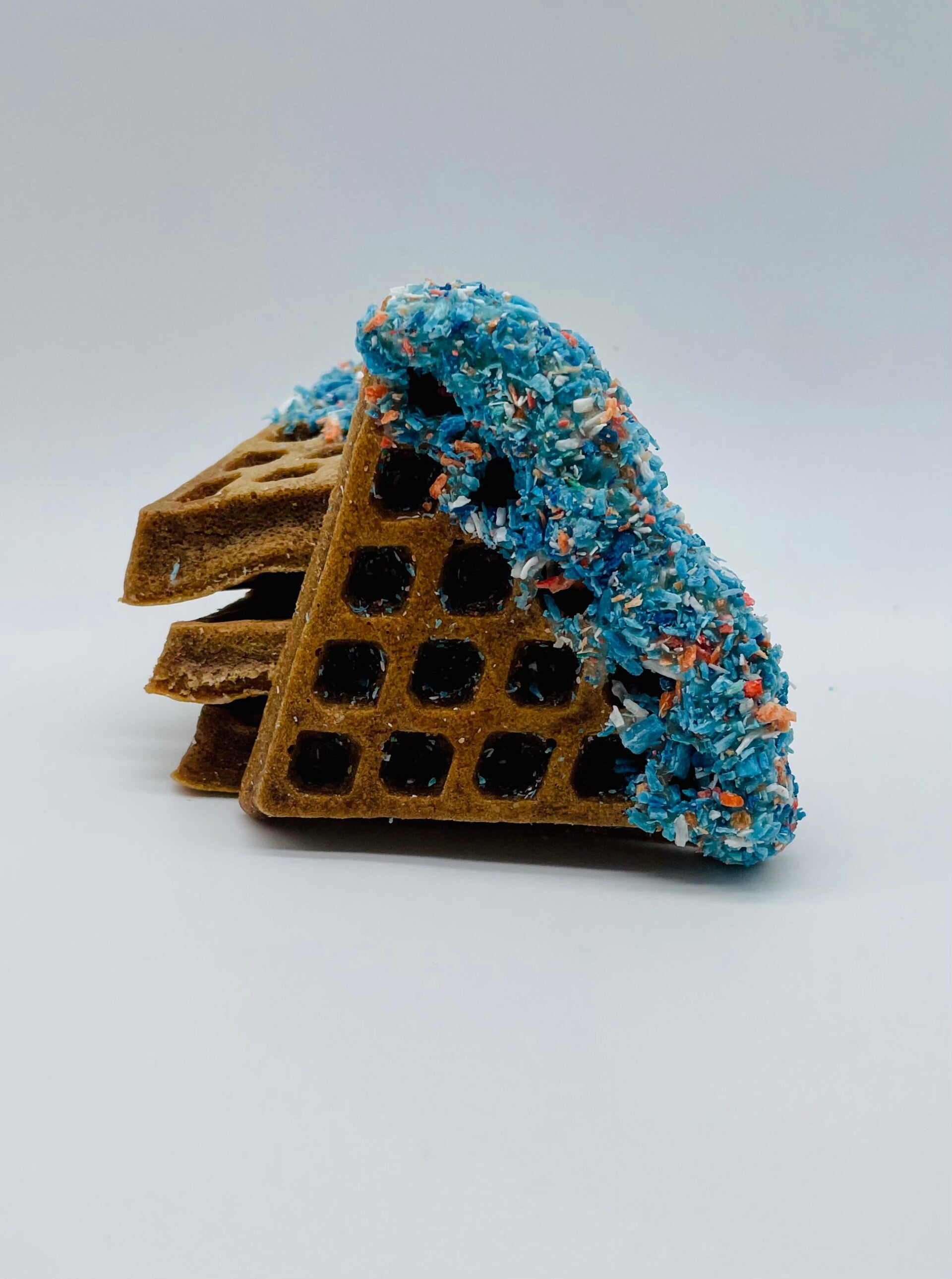 Wuffle met worstenbroodjes smaak. PAWfect voor een lunchsnack! Maak je geen zorgen, net als bij al onze andere lekkernijen zit hier geen vlees in! Al onze producten zijn vrij van het volgende: Tarwe, graan, gluten, vlees en zuivel. PAWfect voor de meest gevoelige buikjes! Geschikt voor puppy's vanaf 8 weken+